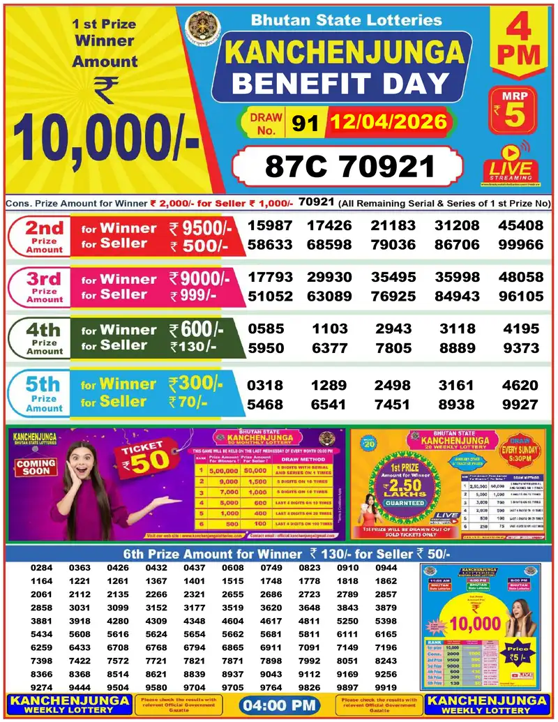 To check your result, view the official result poster above or download the PDF. Match your 5-digit ticket series and number against the winning numbers. Prize claim must be made within 30 days of the draw date with the original ticket.
