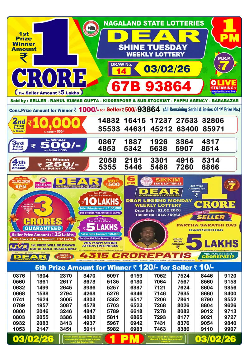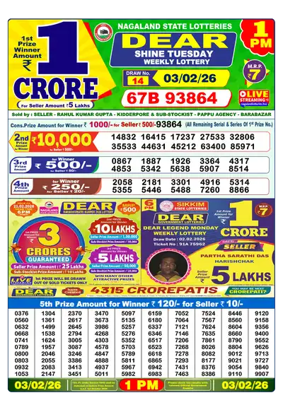 Lottery Sambad 03.02.26 Results – All Draws