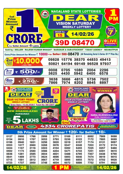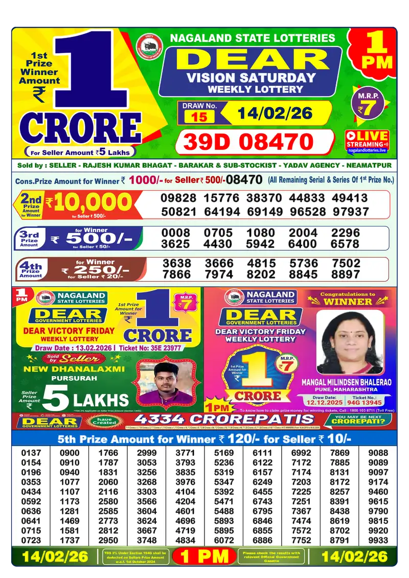 VISION SATURDAY📊 14.02.26 Evening 6PM Result