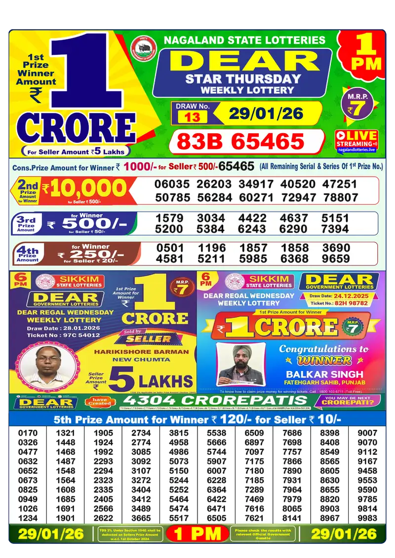 Lottery Sambad 29.01.26 Results – All Draws