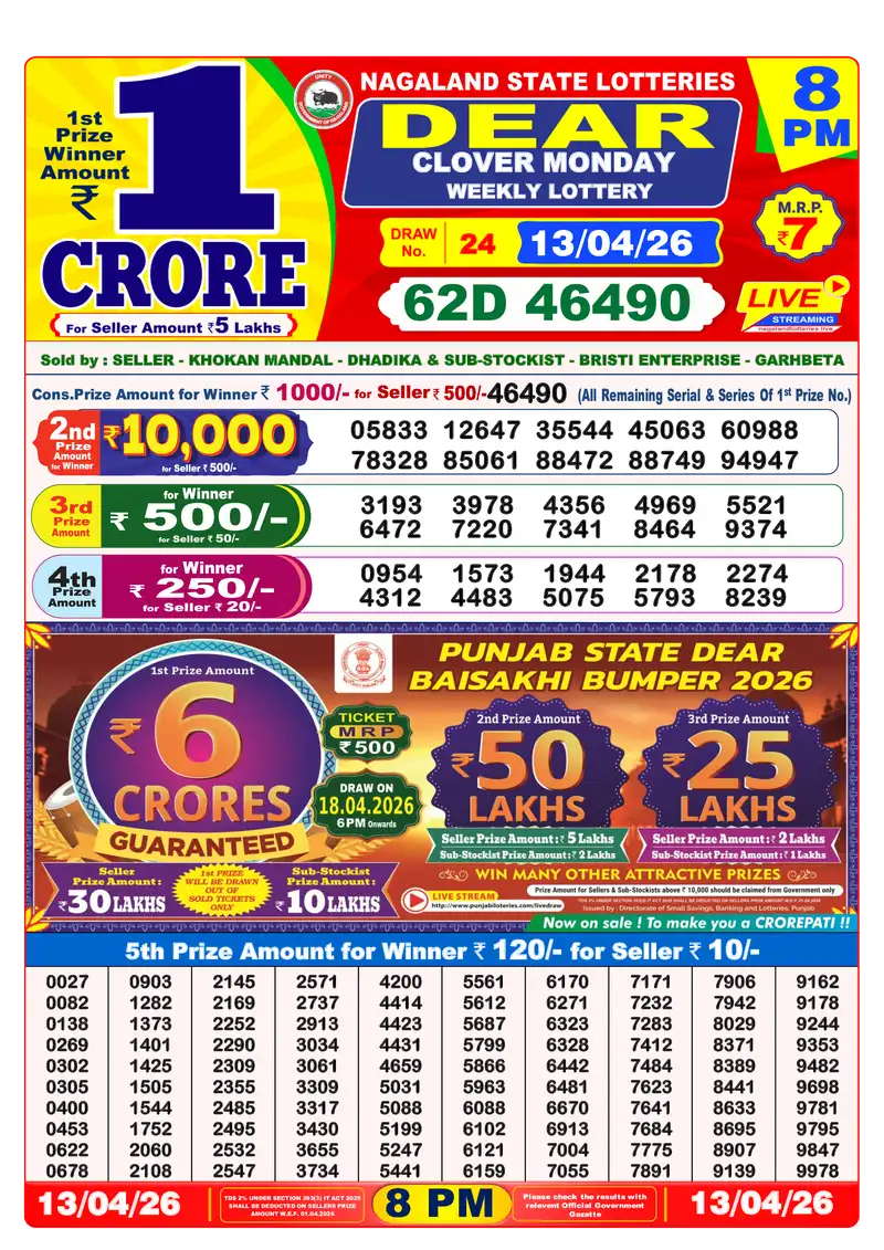 Lottery Sambad Result 13 April 2026