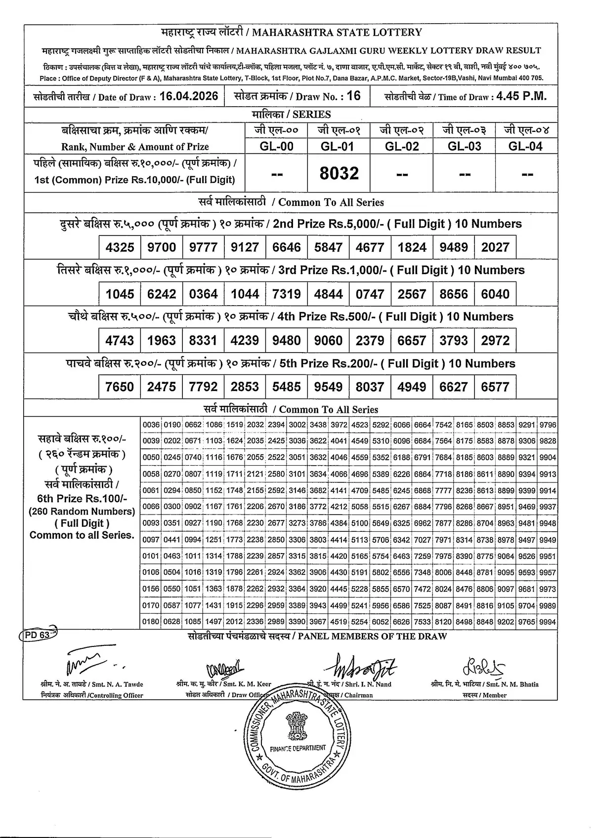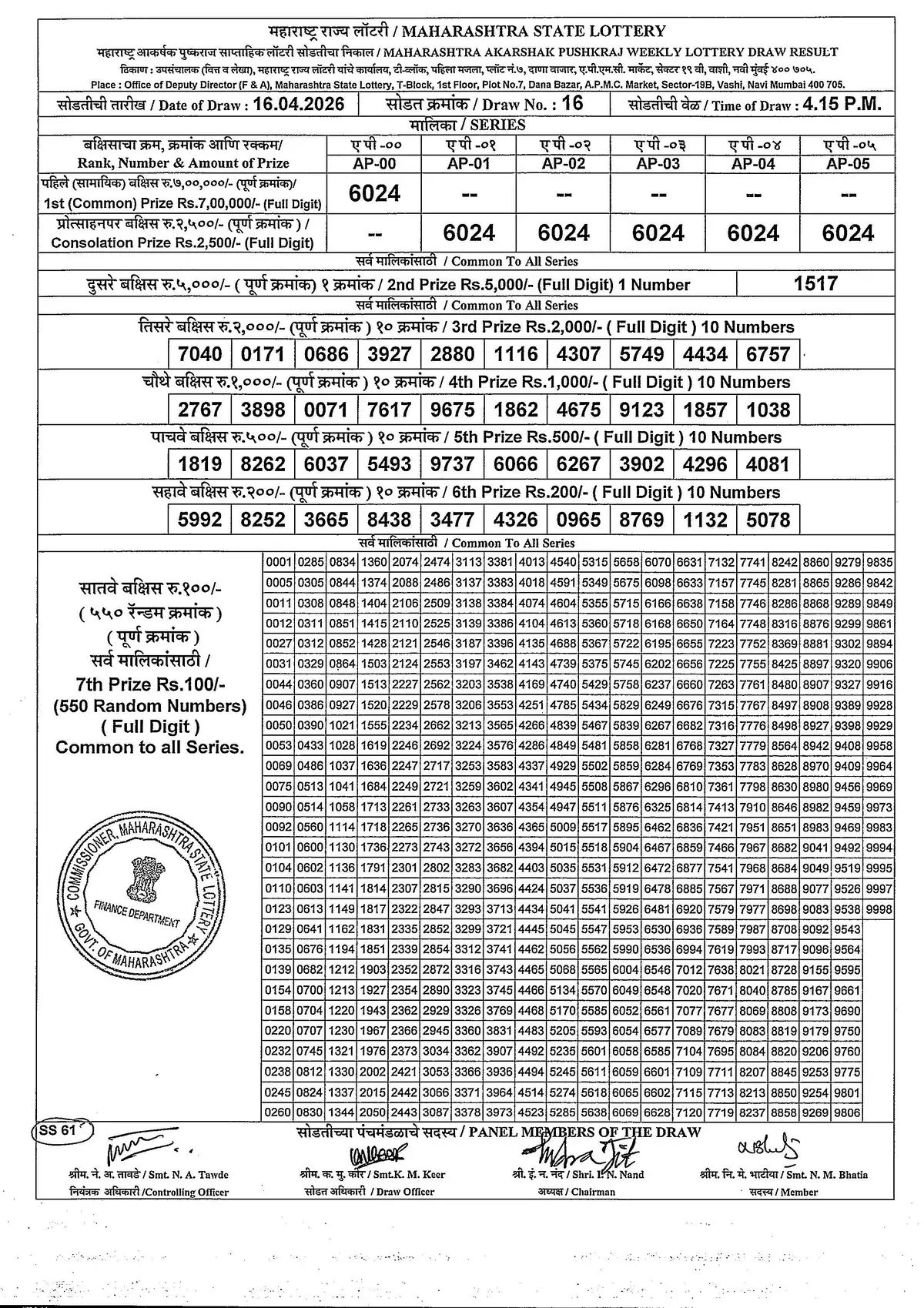 All draws 4:00 PM – 5:00 PM · 3 draws published · Last updated: 16 Apr 2026