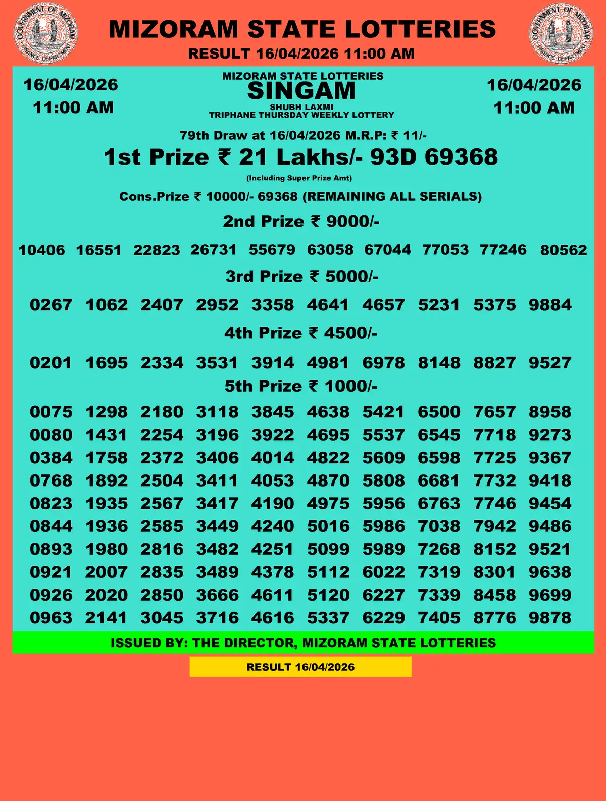 | Day | 🌟 11AM Shubh Laxmi |