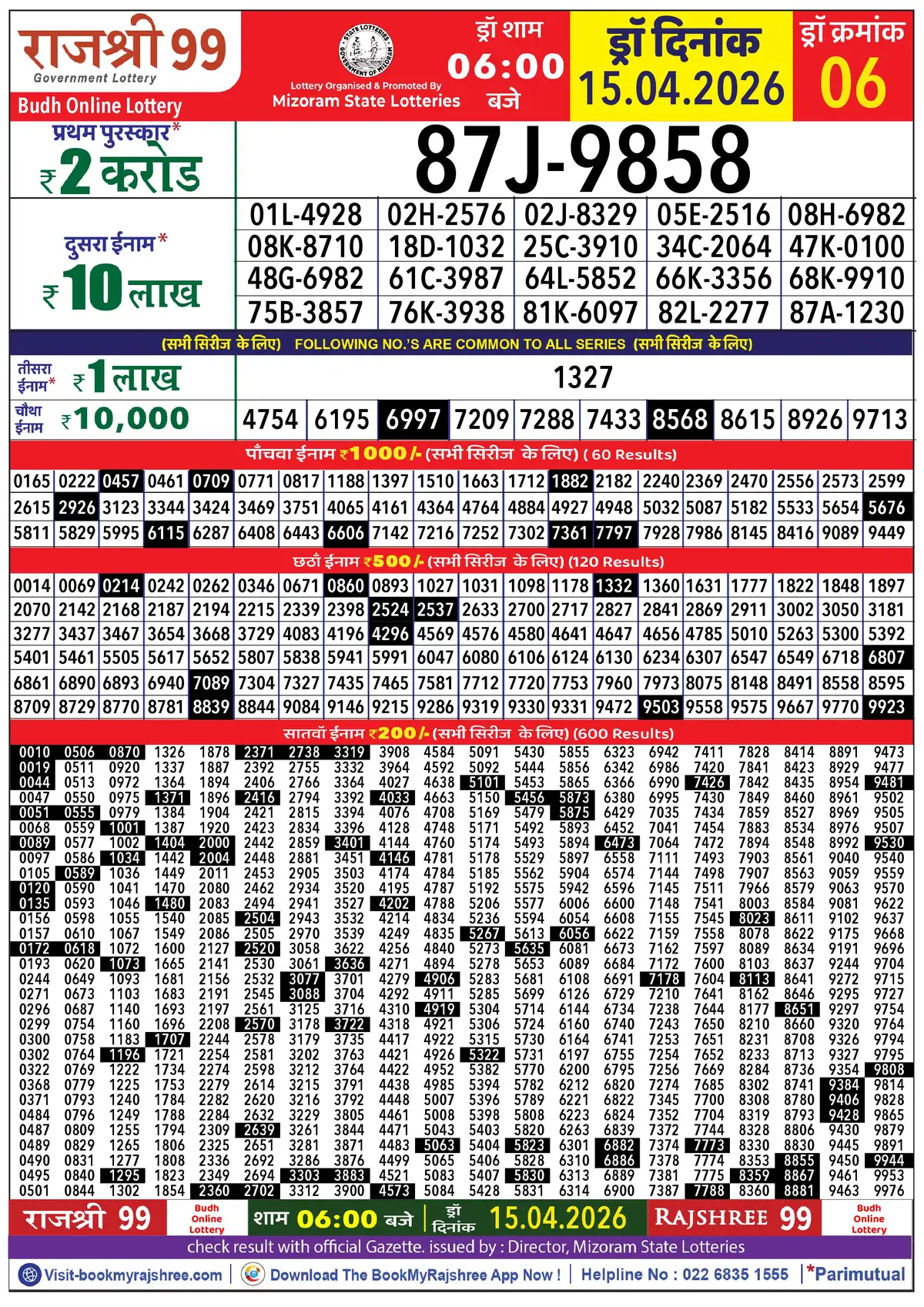 RAJSHREE 500 MONTHLY LOTTERY