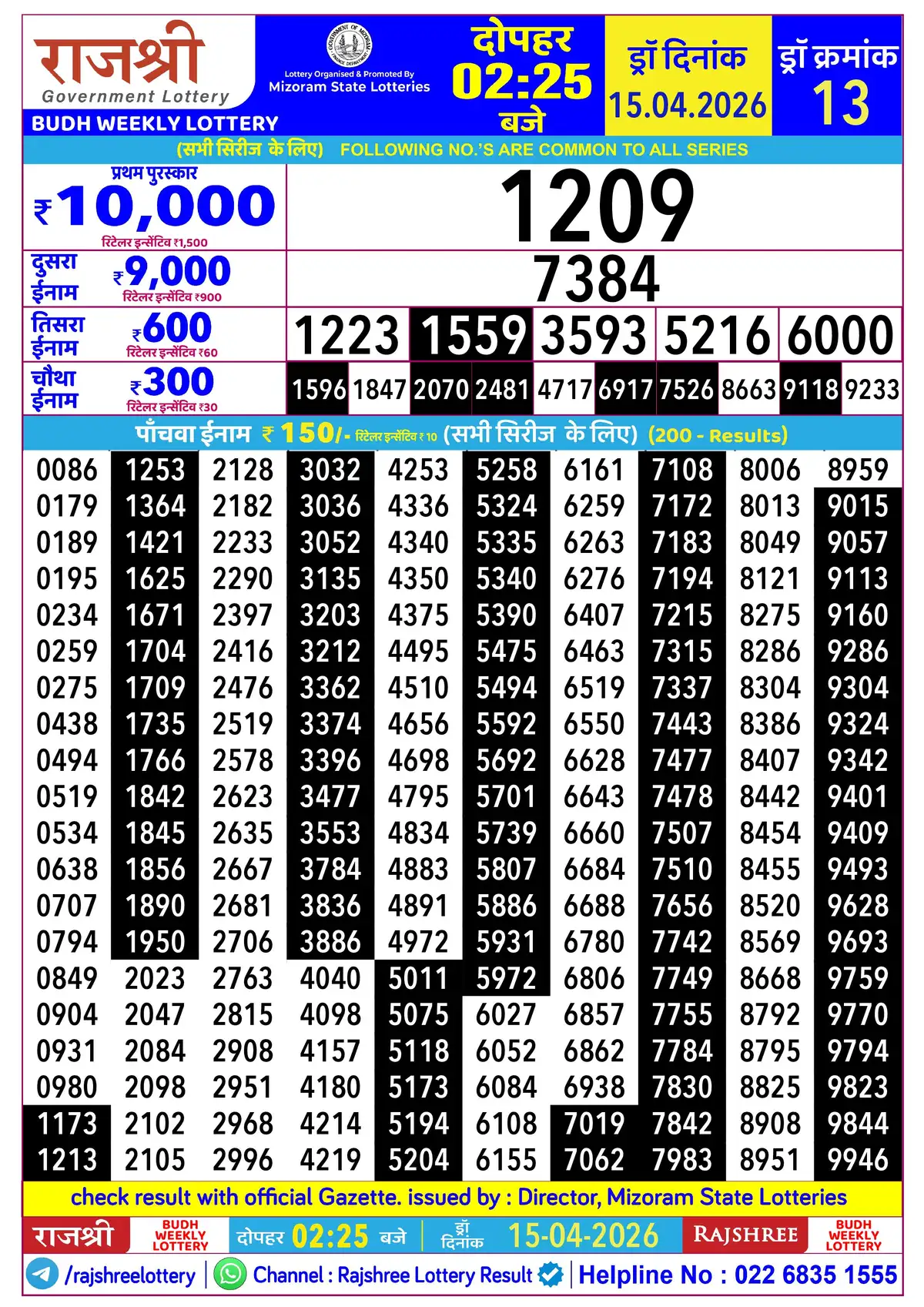 ℹ️ Rajshree Lottery results are published as